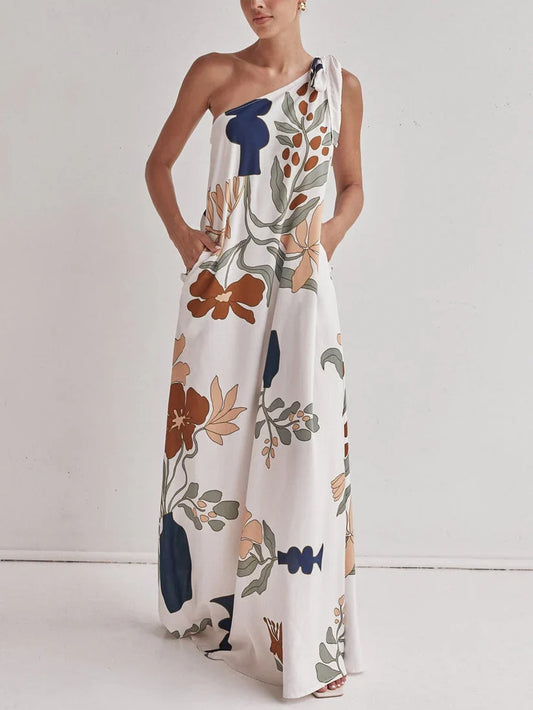 Off Shoulder Fashion Contrast Sleeveless Printed Maxi Dress