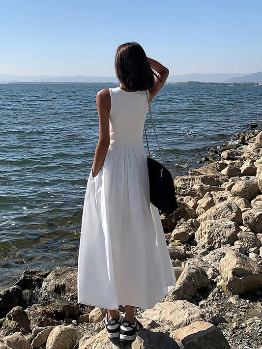 Holiday Casual Ocean Shell Print Sling Maxi Dress