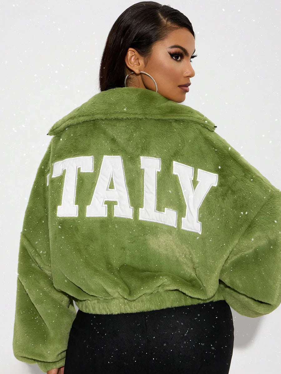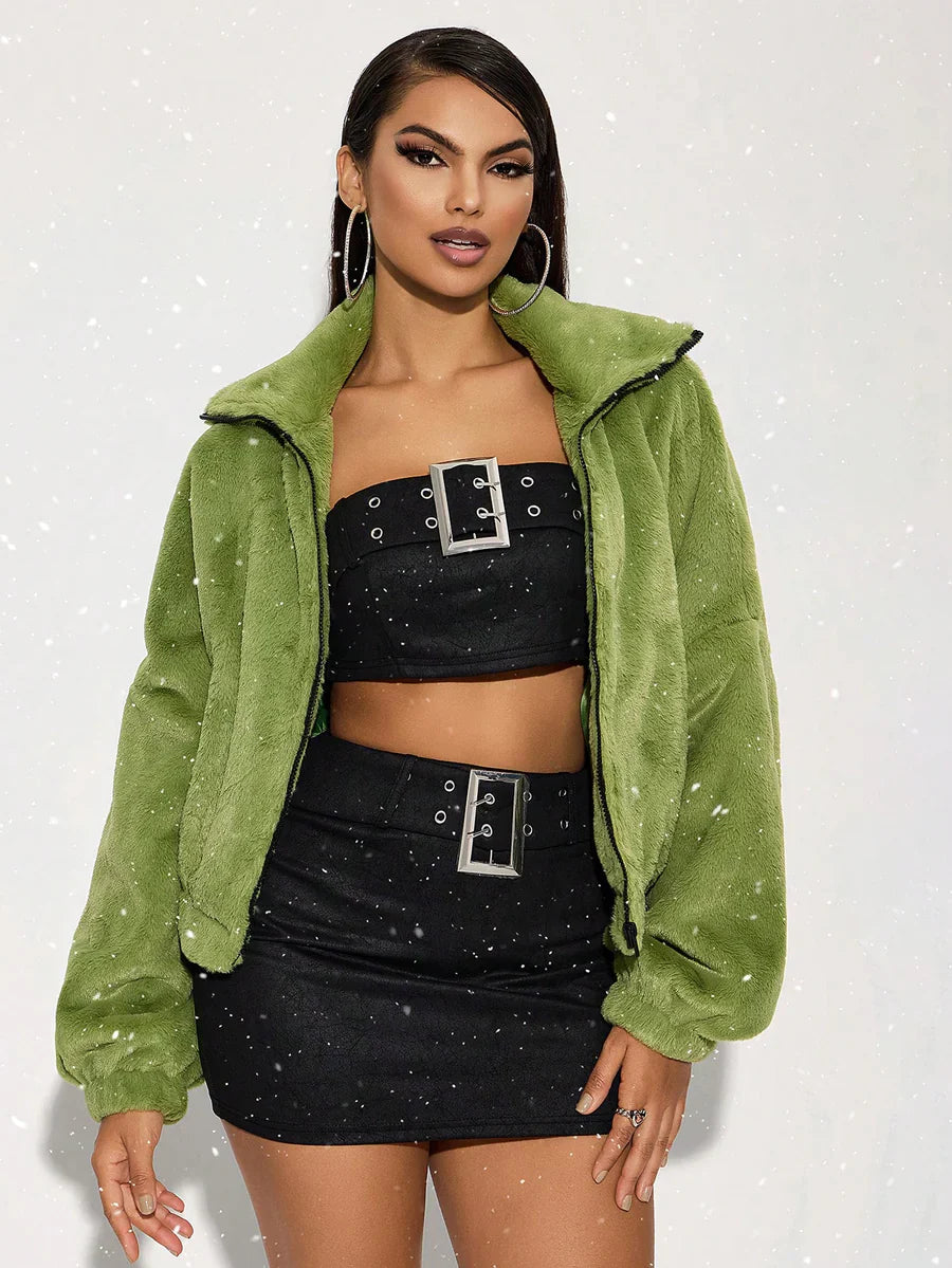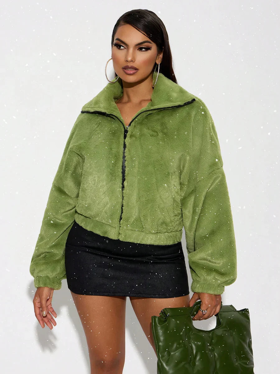 Stay cozy and stylish with this trendy faux fur jacket, perfect for colder winter days.